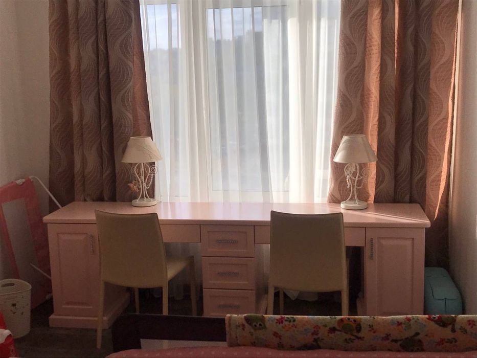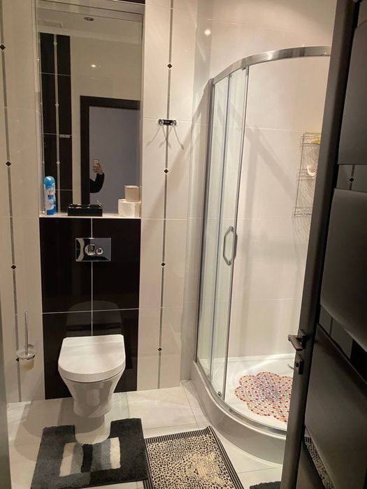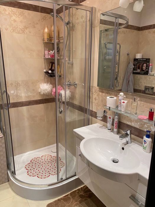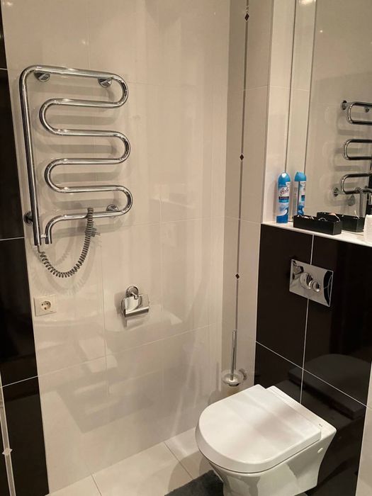 Гаряча вода: є водонагрівачі (бойлери) для ванної та душової кімнат і окремо для кухні, а є ще централізоване гаряче водопостачання. Всюди кондиціонери, які працюють і на обігрів, за потреби. Здається на довгий термін. Оплата перший та останній місяць. Палити в квартирі категорично неможна, але на нашому поверсі у загальному коридорі є окремий балкон для цього. В дитячій кімнаті ліжка розсуваються, тобто можна як одне ліжко, а можна як 2 окремих. Вікна виходять на обидві сторони будинку: вікна на вулицю -панорамні, на подвірʼя -звичайні, але великі. Взагалі, квартира дуже світла і затишна. Велетенські гардеробні та шафи. Дуже багато місця. В житті квартира набагато комфортніша за фото.