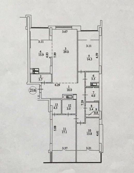 У квартирі 4 санвузли. Тепла підлога, уся необхідна побутова техніка. Балконів, лоджій немає - збільшені кімнати за їх рахунок. З одного балкону зробили в кімнаті невеличке робоче місце зі столом та книжковою шафою.