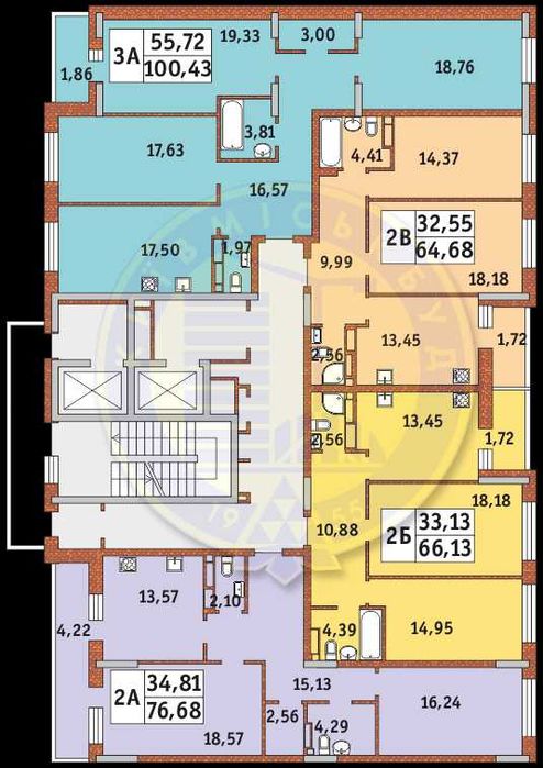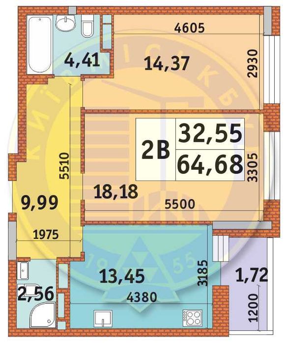 Квартира в будинку №3 (найбільш завершений), 7 поверх, площа 64.68 кв.м.