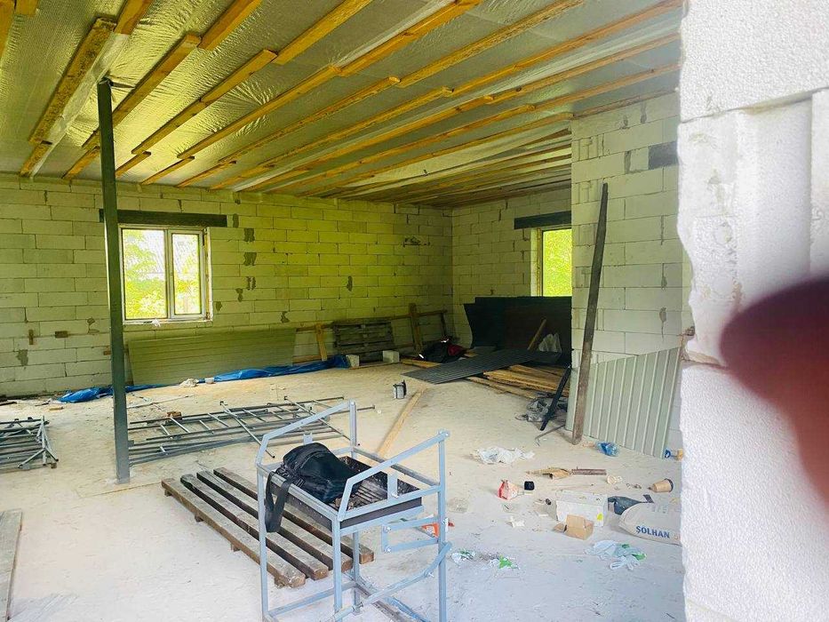 Просторий будинок з готовністю 60-70%, побудований під вільне планування, що дає можливість облаштувати простір саме під ваші потреби і мрії. Зведена коробка з газобетону, встановлені металопластикові вікна, розведена каналізація, встановлений металевий черепичний дах, оригінально підшитий.