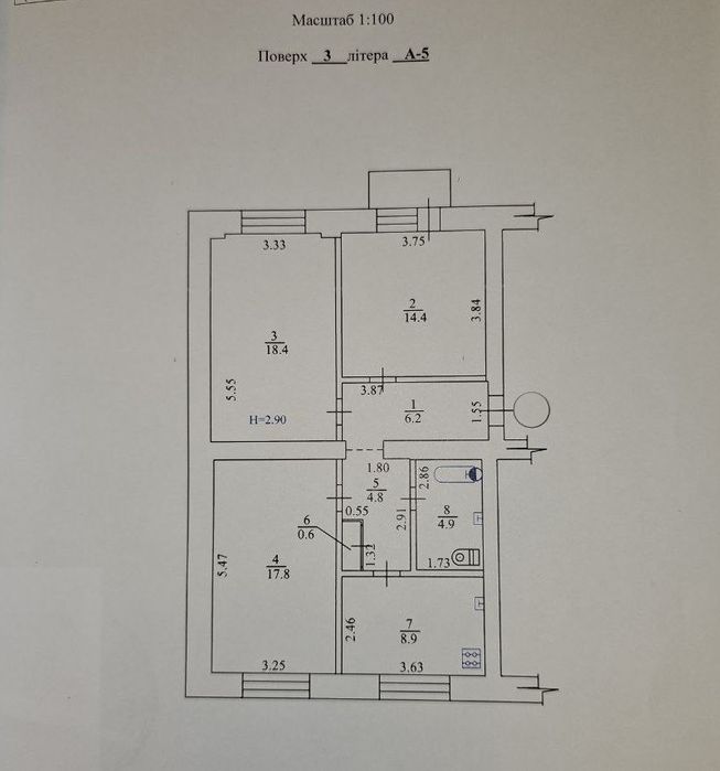 Площа — 75,9 м², 3 поверх із 5.