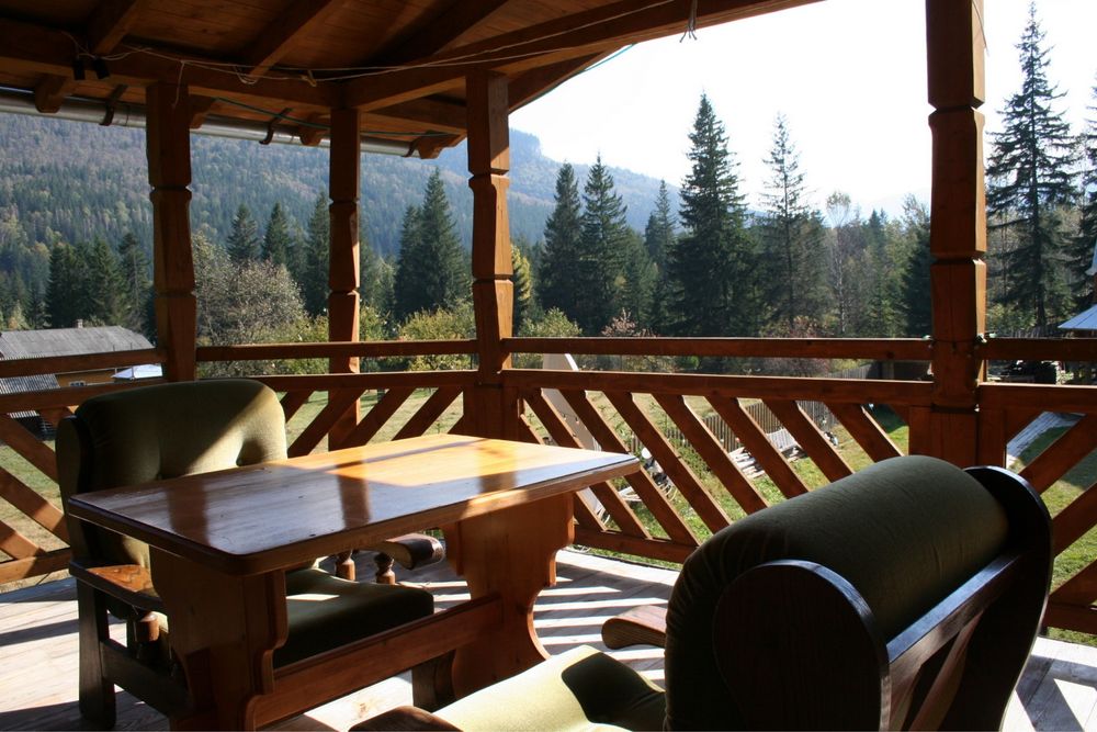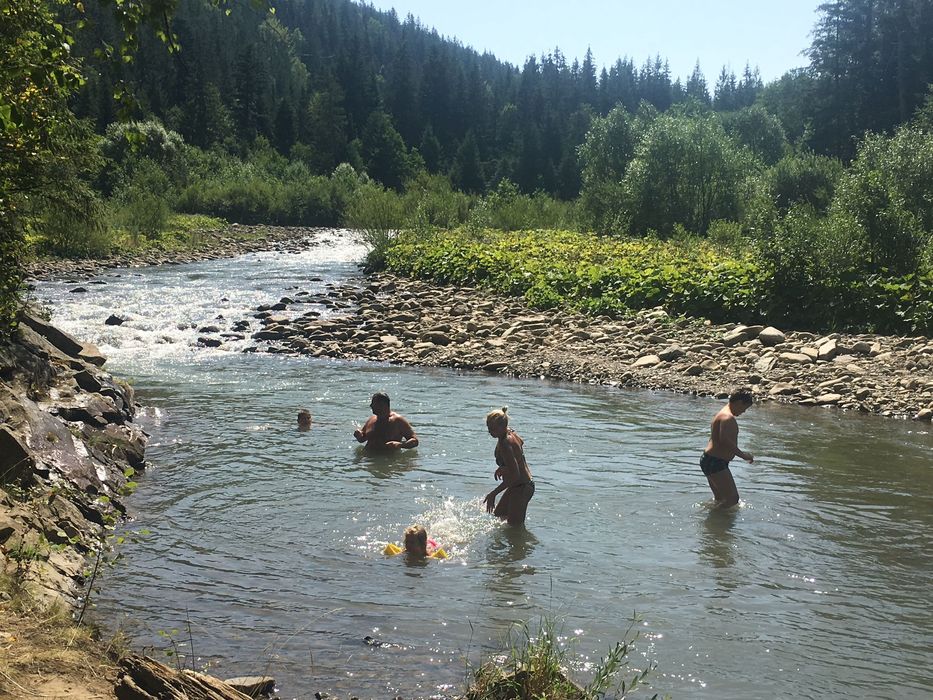 Оренда Затишний будинок у серці Карпат; Уютний двоповерховий будинок з камінною залою, столова, кухня, с/у, 3 спальні, велика тераса з видом на гори, сауна на дровах, басейн з джерельною водою, зона барбекю на березі річки, газ, світло, інтернет. Парковка на 3-4 авто.