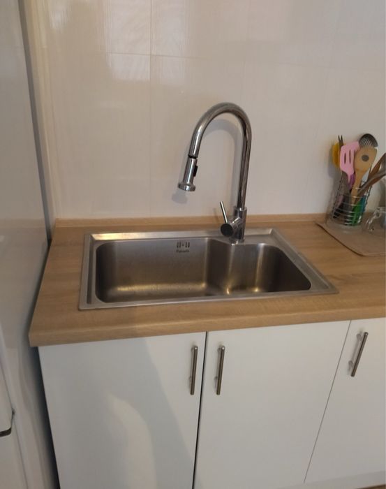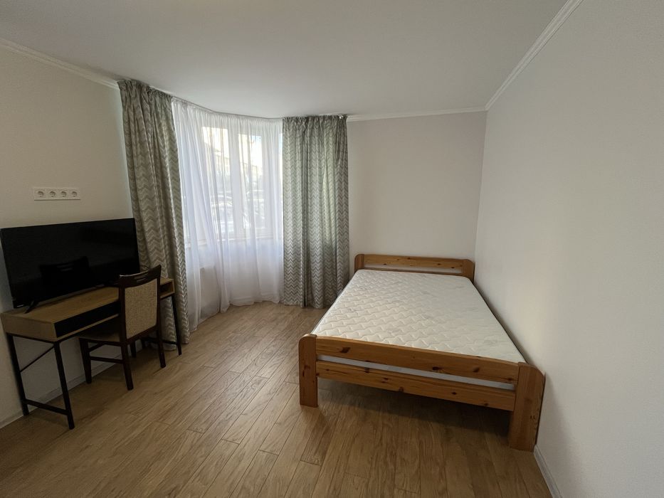 У спальні двоспальне ліжко з новим матрасом. На кухні розкладний диван 1.6*2.0.