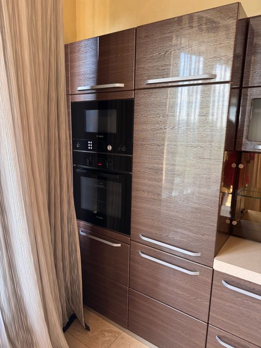 • Світла кухня-студія з панорамними вікнами та виглядом на парк, повністю обладнана вбудованою технікою (холодильник, морозильна камера, мікрохвильова піч, варильна поверхня, духовка), кондиціонер та телевізор.
