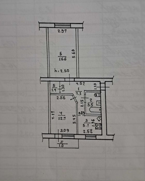 Поверх 5/5. Площа - 47,6 кв.м. житлова 29,3кв.м, кухня 5,1кв.м, кімнати 12,7 і 16,6кв.м.