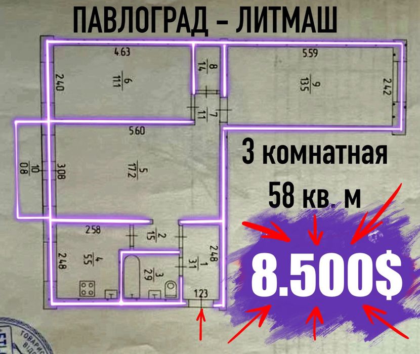 ПРОДАМ 3-к Павлоград , ул.Преображенская 24; САМАЯ НИЗКАЯ ЦЕНА В ГОРОДЕ. 8.500$