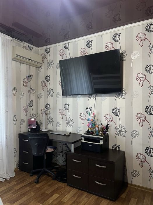Електроопалення, газова колонка, кондиціонер, лічильники :газ, вода, на світло день-ніч. Зовні повністю утеплена. На балконі ремонт 2024 року, стіни-ламинат, пол-ленолеум. Шафа у прихожій робилася під замовлення у 2024 році. Диван в залі та кровать у спальні купувалися у 2023 році. Два телевізори, два холодильники, варочна поверхня, духова шафа, мікрохвильова піч, штори, люстри та меблі- все залишається.
