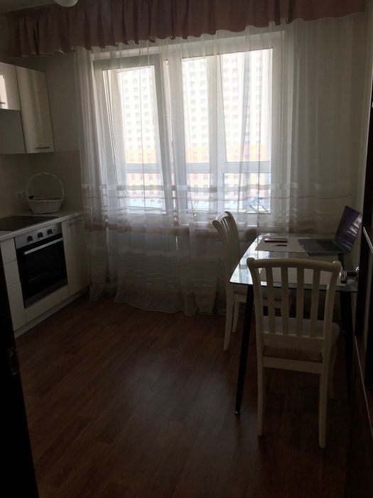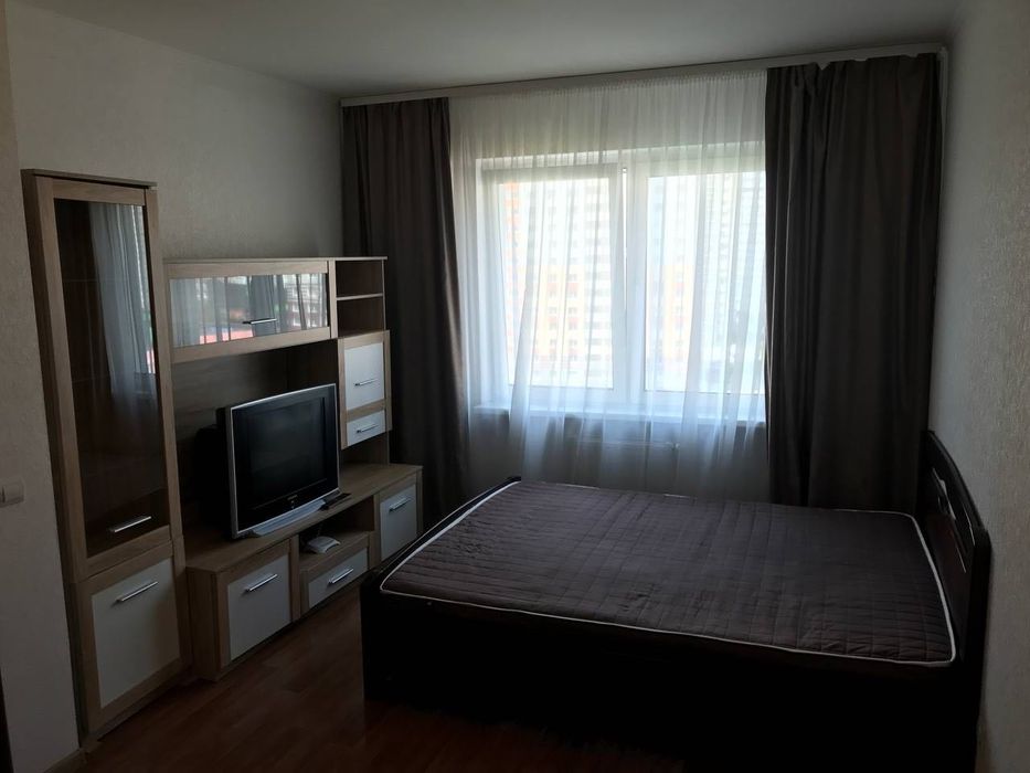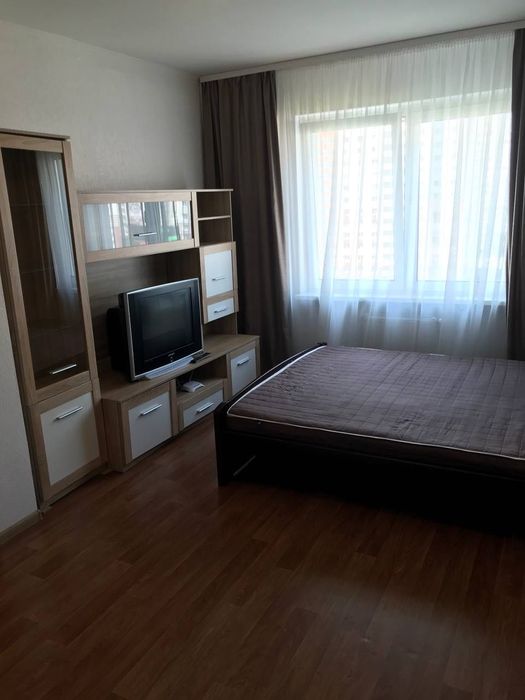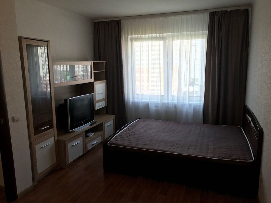 Квартира після євроремонту, облаштована сучасними меблями (двоспальне ліжко, шафа-купе) та необхідною побутовою технікою. Панорамні вікна відкривають чудовий краєвид на двір.