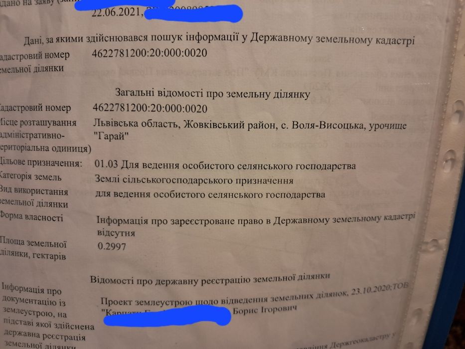 | Земельна ділянка: |
