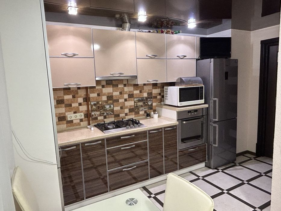 Квартира з гарними сучасним ремонтом, повністю мебльована, а також уся нова побутова техніка! Холодильник, духова шафа мікрохвильова піч та газова плита, пилосос, пральна машина, посудомийка.