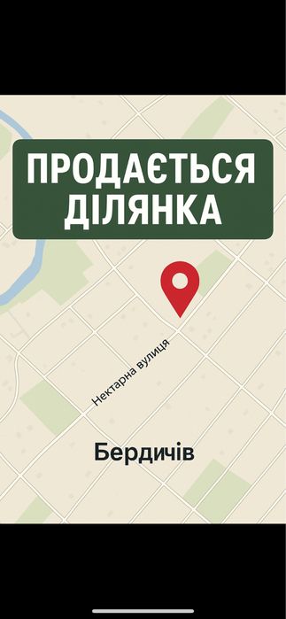 Продам земельну ділянку в м. Бердичів, вул. Нектарна; Пропонується до продажу земельна ділянка під індивідуальне будівництво у межах міста.