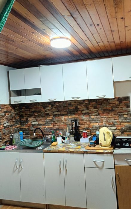 первый этаж кухня столовая,душ туалет,бойлер.второй этаж 2 раздельные комнаты.