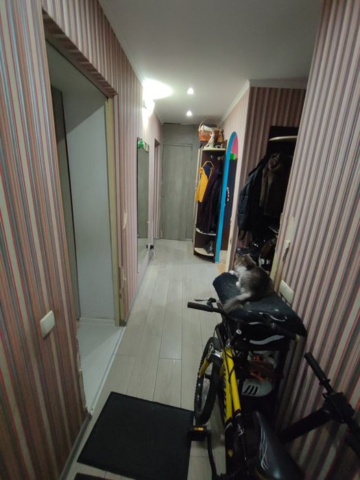 По квартирі положені тирсоплити, а наверх ламінат ( крім 1 кімнати) там ламіната немає. Та ламінат в поганому стані так як ложився десь 12-14 р тому.