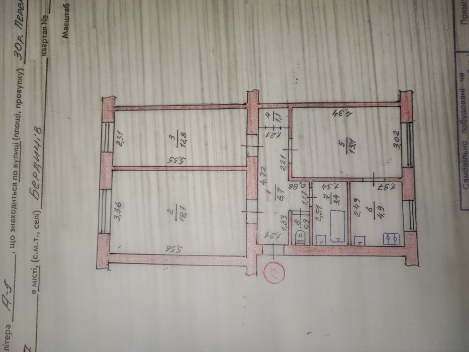 В квартирі робилось перепланування ( тех паспорт вже новий після перепланування) змінювались розмір ванної кімнати (збільшували її) і добавляли стіну з гіпсокартону. Після перепланування ванна кімната зовсім без будь якого ремонту. Туалет повністю обкладений плиткою, але це робилось 20-22 р тому - плитка вже стара.