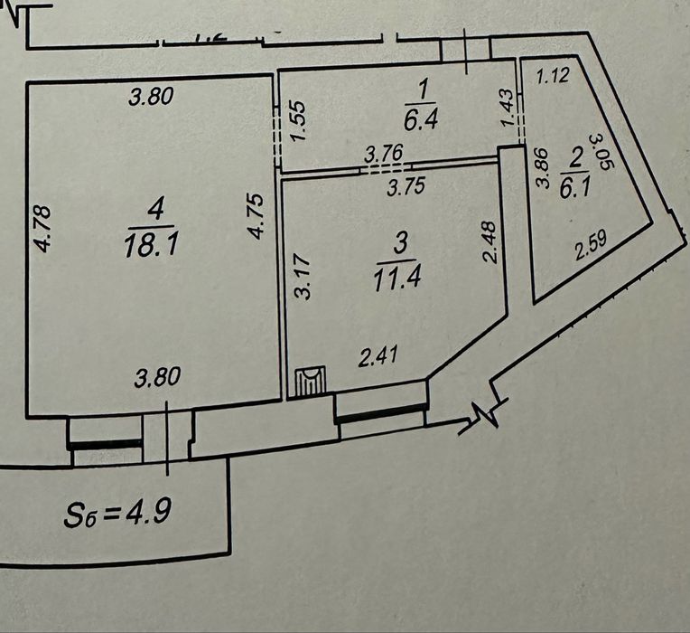Велика площа як для 1к квартири