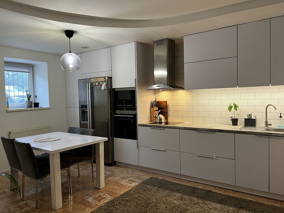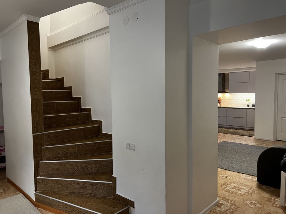 Загальна площа 104кв. м., квартира трьохрівнева, кухня виходить на цокольному поверсі. Будинок цегляний 2008р.