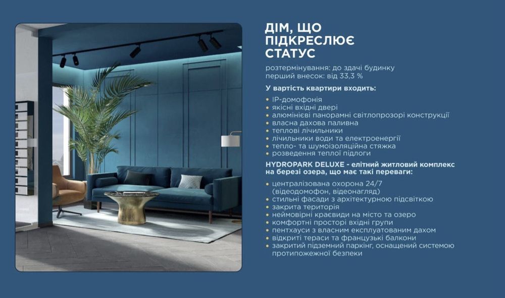 HydroPark DeLuxe — це не просто квартира. Це стиль життя, який поєднує комфорт, безпеку та гармонію з природою