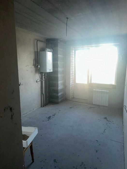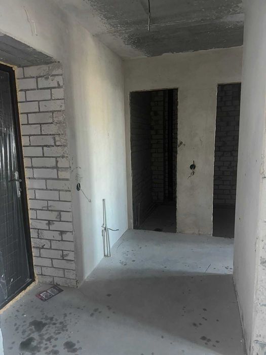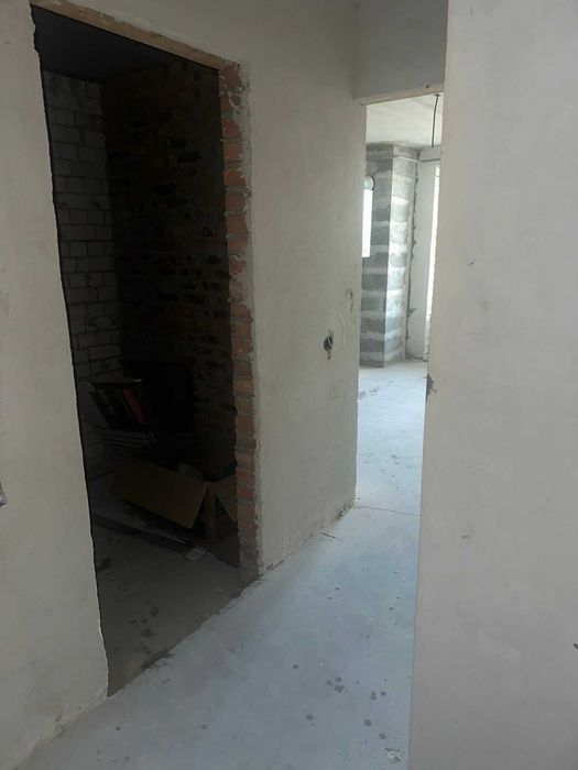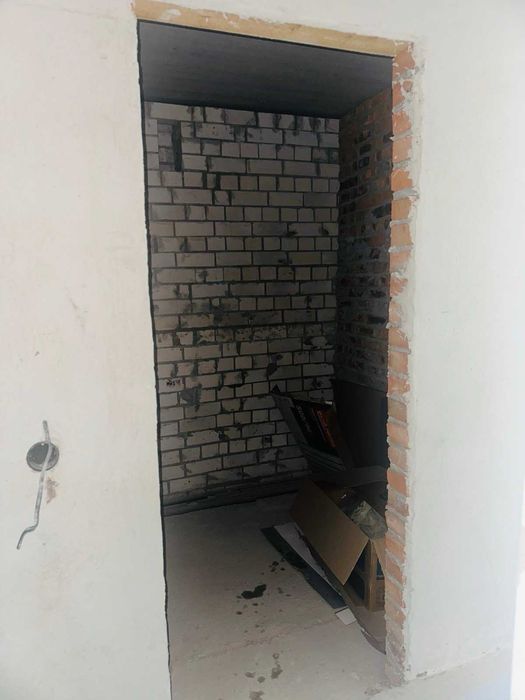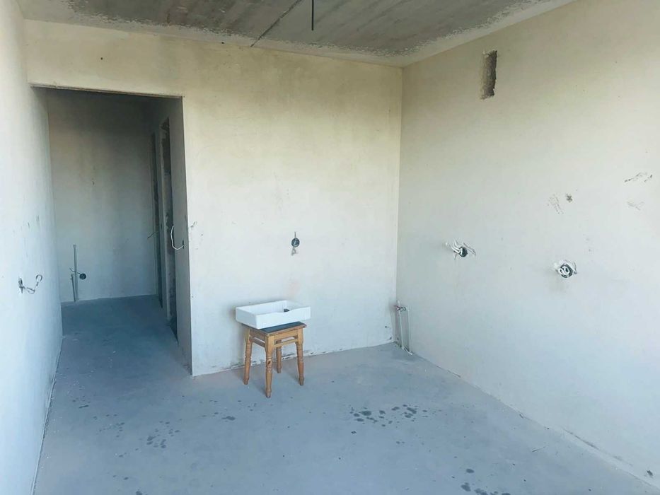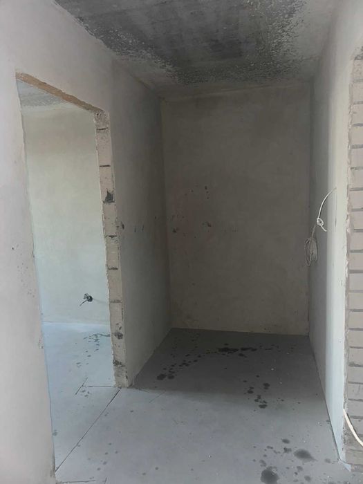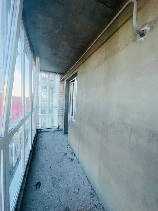 На підлозі виконана чистова, ідеально рівна стяжка. Стіни вже оштукатурені.