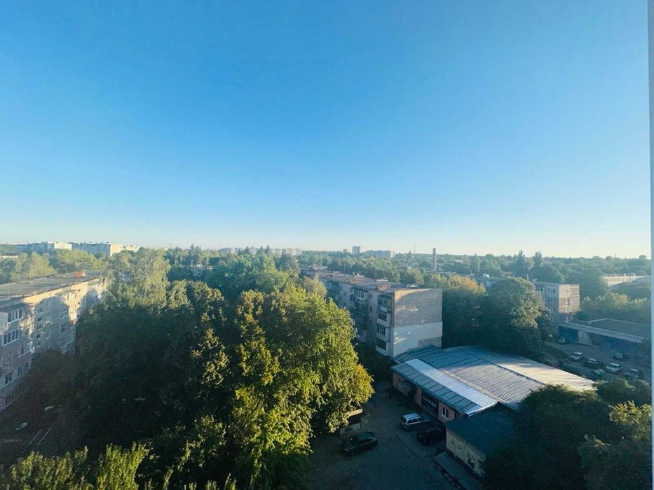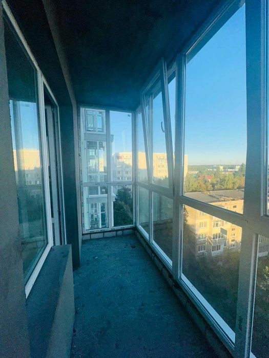 Величезлий панорамний засклений м/п рамою балкон через довжину всієї квартири з двома виходами - з кімнати і з кухні, звідки відкривається чудовий вид на місто. І ніколи не побудують будинок навпроти)