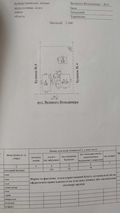 | Земельна ділянка: |