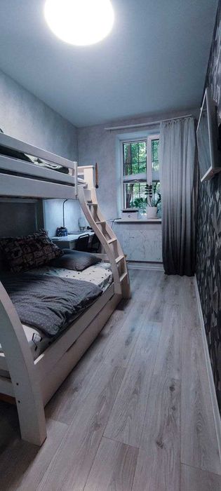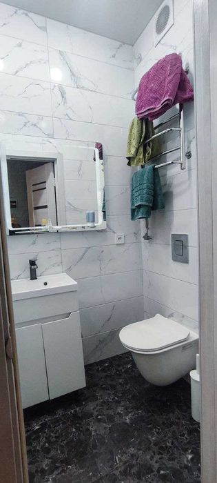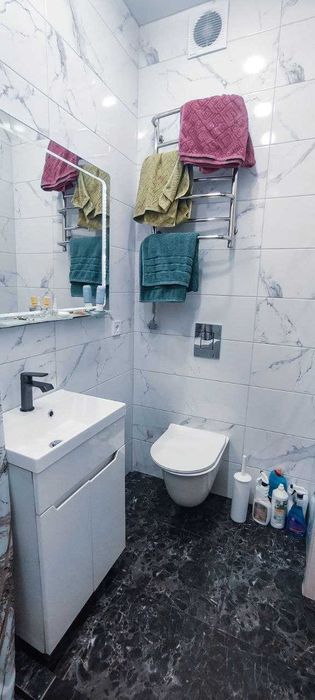 Новітній ремонт зроблений в санвузлі та в двох кімнатах. Кухня потребує закінчення ремонту, але придатна до проживання. Виготовлені каркаси для мийки, плити, виведно електричні точки під все обладнення, а саме: холодильник, посудомийна машина, плита, духова шафа, витяжка, кондиціонер тощо.