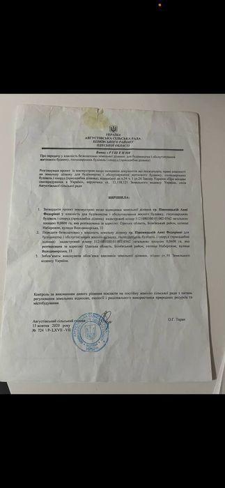 | Земельна ділянка: |