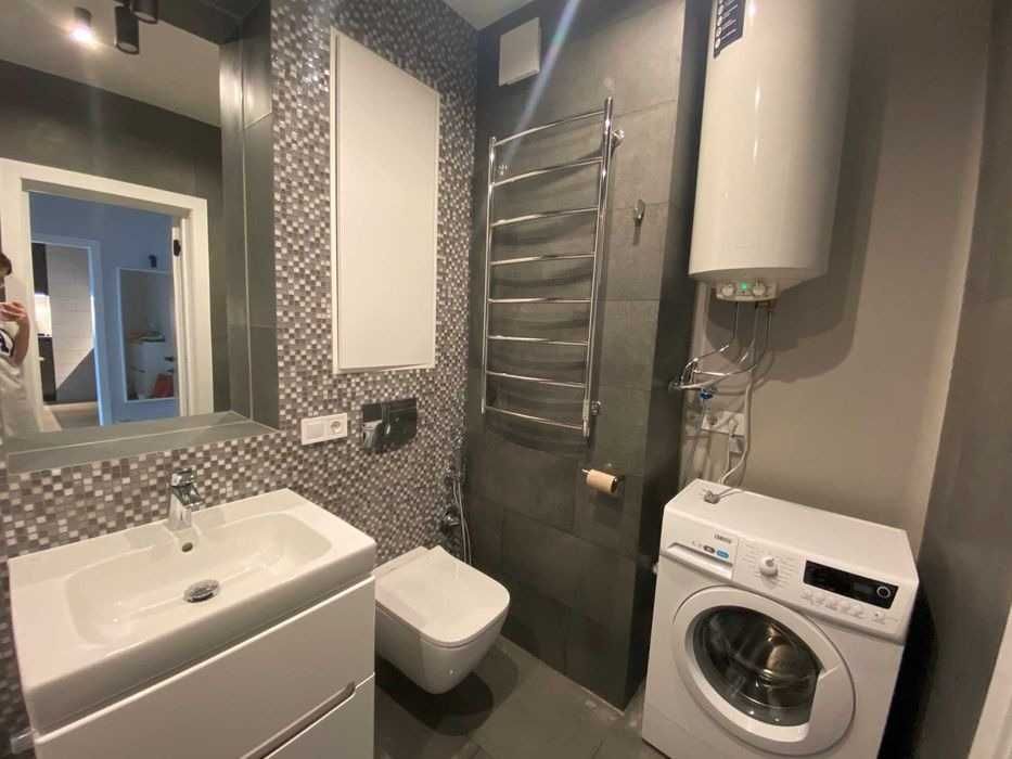 Квартира площею 46 м², повністю мебльована та укомплектована технікою.