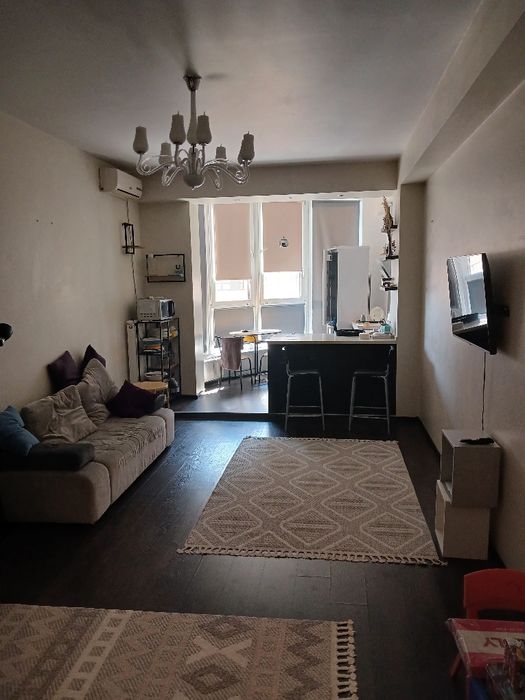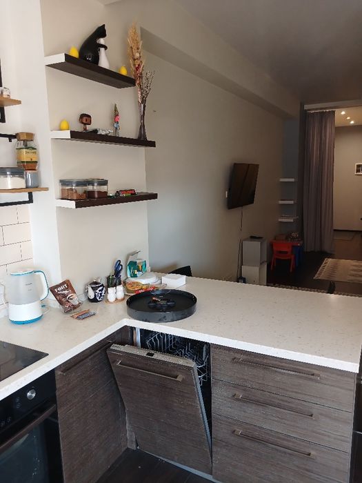 13 этаж (16 ти этажного дома) вся необходимая мебель есть- стиралка,холодильник,посудомойка,микровалновка,кондиционеры,Tv WF и т.д