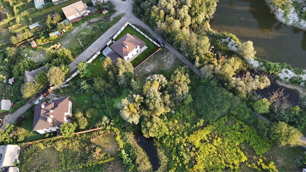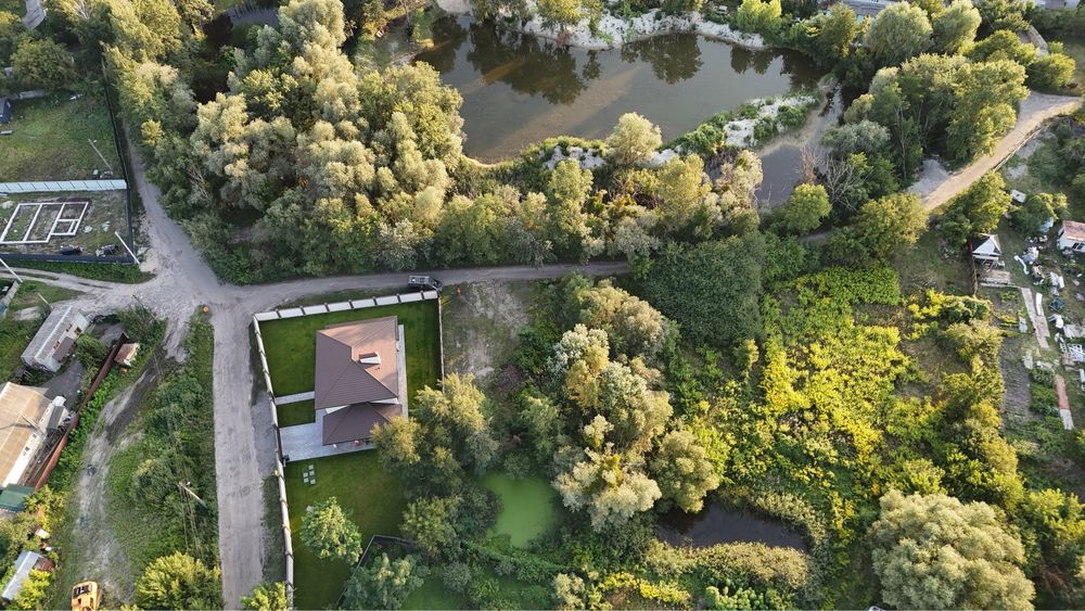 Поруч невеликі озерця, побудовані будинки, авторинок, траса, окружна дорога