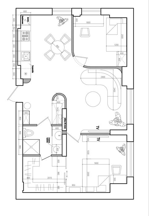 Планировка в квартире уникальная по дизайну и удобная.