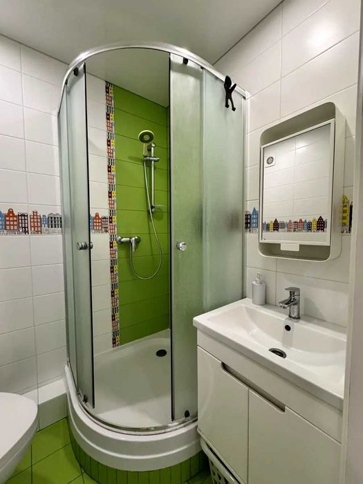 З техніки в квартирі великий та якісний smart телевізор, два нових інверторних кондиціонера, пральна машина, нова мікрохвильовка, варильна панель, духова шафа, витяжка, новий бойлер на 80л, мультиварка, Лічильники, Душова кабіна, нова посудомийна машина!