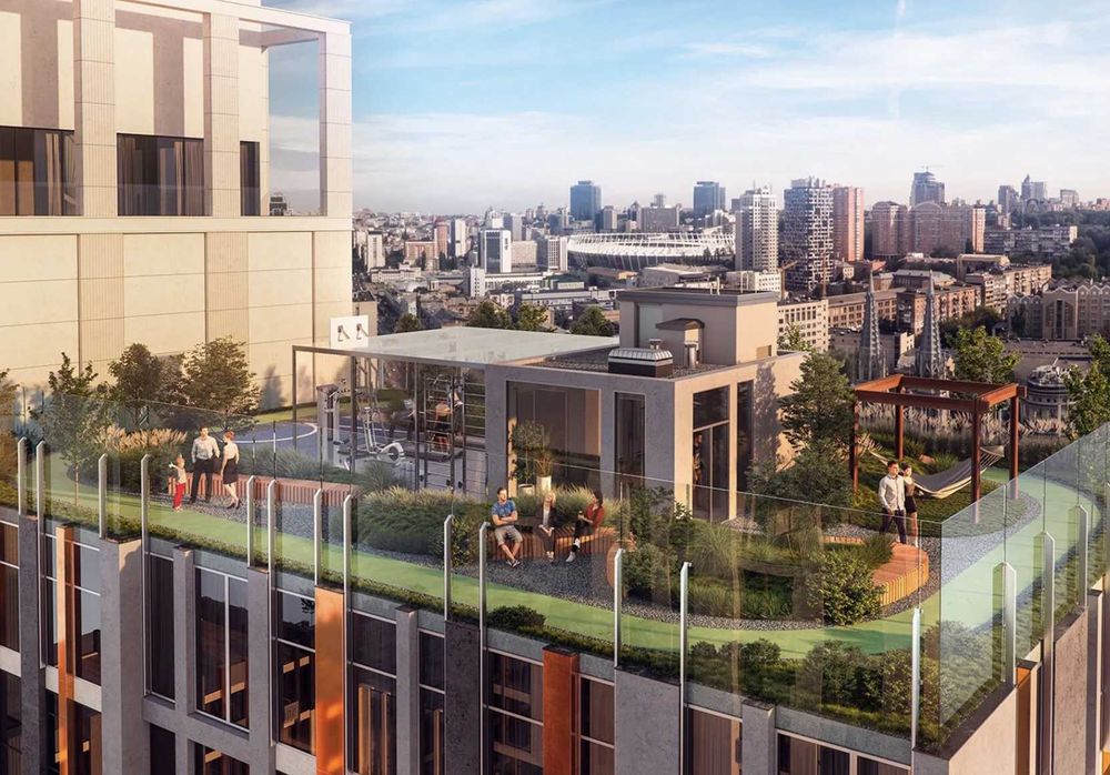 Поруч є дитсадки, школи, інститути. Через дорогу розташований костел святого Миколая. Поруч ТРЦ Ocean Plaza, кафе та ресторани, парк Заньковецької, НСК «Олімпійський», палац «Україна». На першому поверсі новобудови відкриються свої комерційні об'єкти. Два рівня секції у дворі буде займати дитячий садок зі своєю обгородженою територією та окремим входом. Мешканці можуть відпочивати та займатися спортом на терасах загального користування, розміщених на верхніх рівнях комплексу.