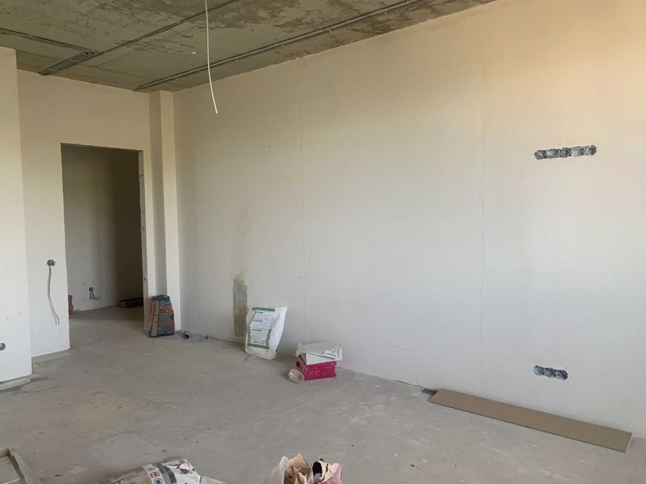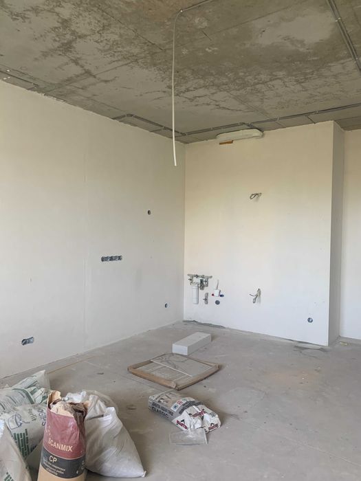 У квартирі зроблена чорнова відділка: стіни, сантехніка розвдена, електріка розведена, санвузол з плиткою та ванною. Зроблена підготовка для встановлення кондиціонеру. Переуступка.