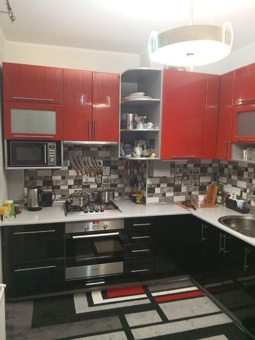 Кухня 8,8 м.кв.зі стінкою з МДФ, газова поверхня і духова шафа БОШ, холодильник Самсунг, мікрохвильова піч Гореніє, Смарт ТВ LG, двоконтурний газовий котел Беретта з клімат-контролем.