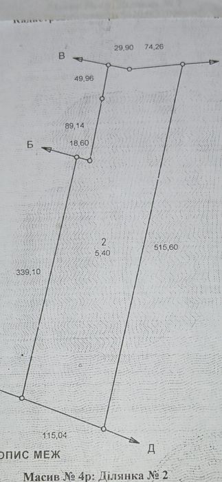 Земельна ділянка; Продається земельна ділянка пай 5.4 га.в районі між Камянкою і Яблуним.