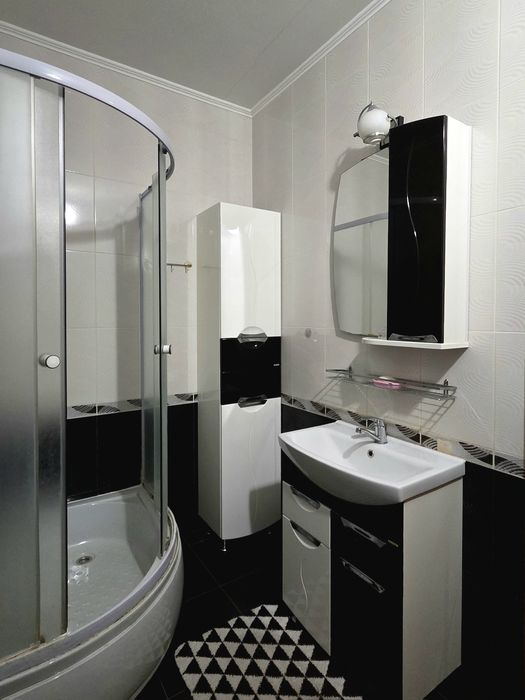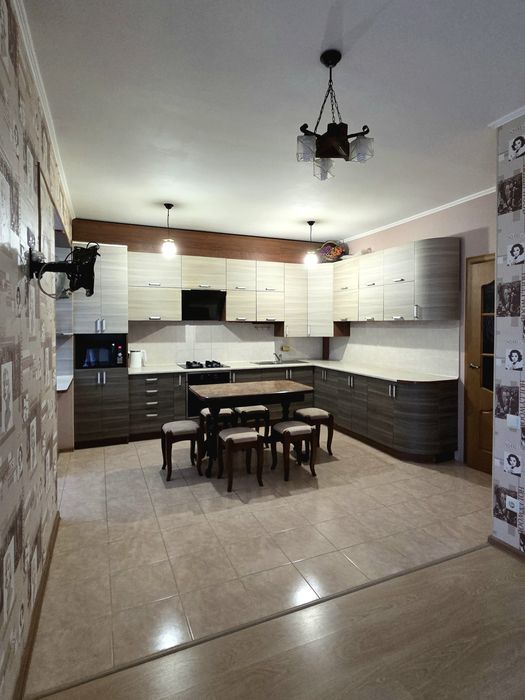 Кухня-вітальня має кутовий кухонний гарнітур з великим столом та м'якими стільцями з натуральної деревини, бойлер, двоконтурний газовий котел мікрохвильовку електро чайник варильну газову панель та електро духовку, 2 кутовий розкладний диван з комфортним матрацем, великий балкон. Сан. вузол окремий з гігієнічним душем. Підлога у ванній, туалеті, кухні та коридорі з підігрівом, радіатори з регуляторами тепла ( дуже економне використання опалення), у квартирі багато точкового світла, відеодомофон, двоє вхідних дверей. Дуже затишний ЖК в 15 хвилинах від метро "Теремківська". Невеликі лавки і великі маркети (Новус, АТБ