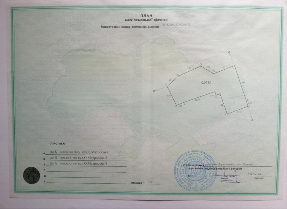 | Земельна ділянка: |