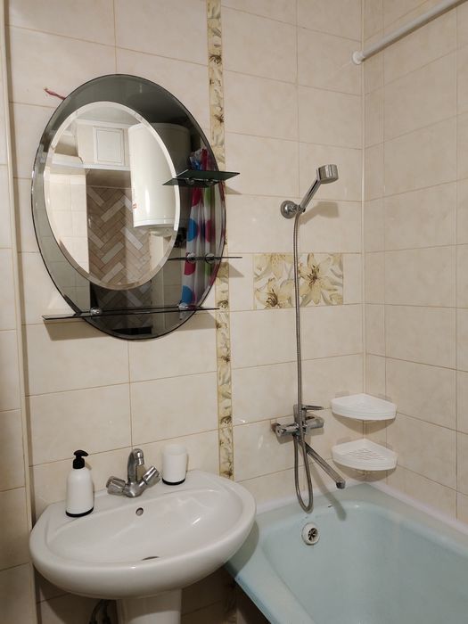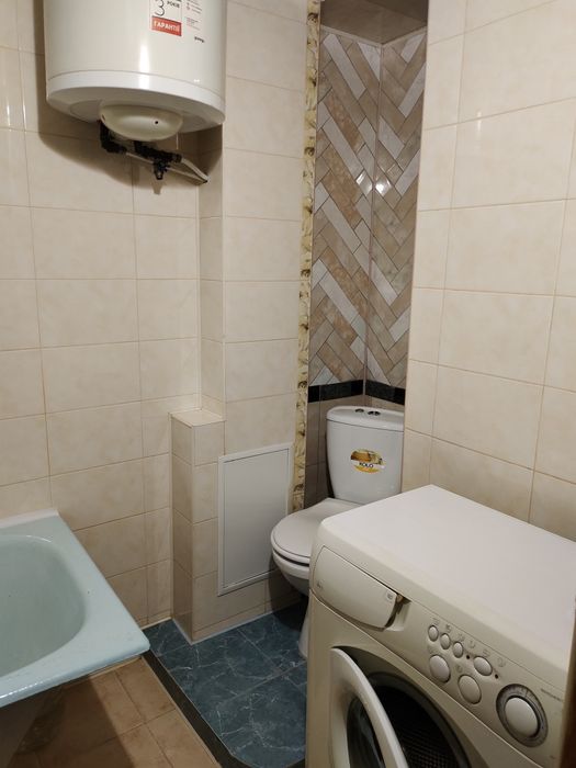 Є все необхідне : бойлер, кондиціонер, мікрохвильова піч, пральна машина, телевізор, диван, крісло розкладне, стінка, засклений балкон, утеплена ззовні. Лічильники на воду, світло, газ. Поруч магазини, торговий центр, школа, зупинка.