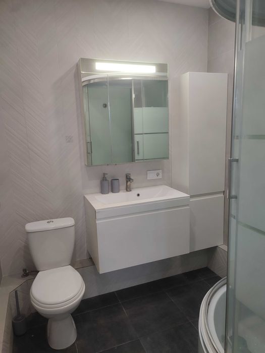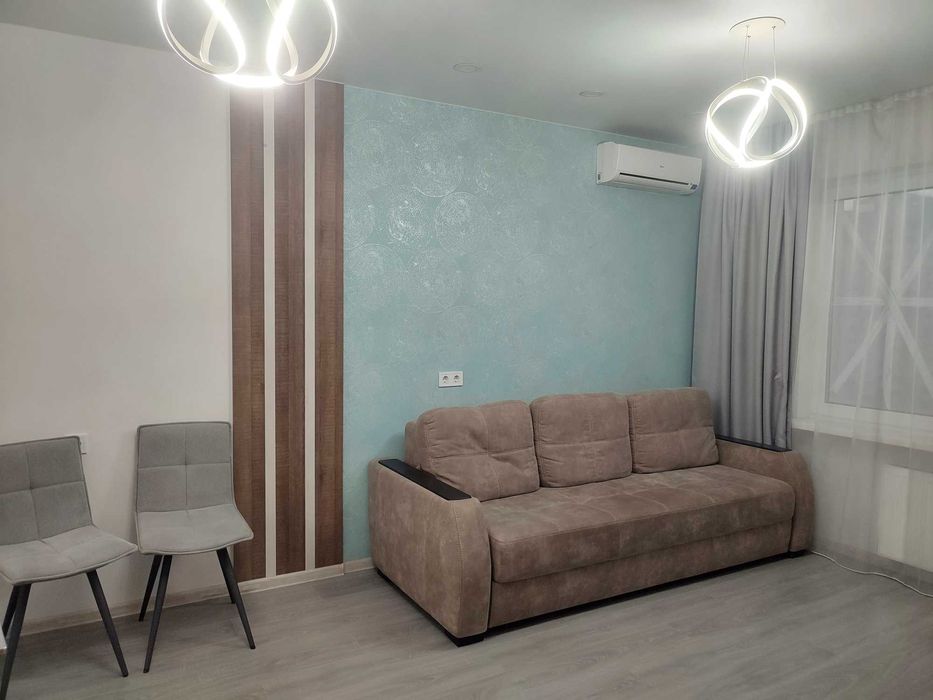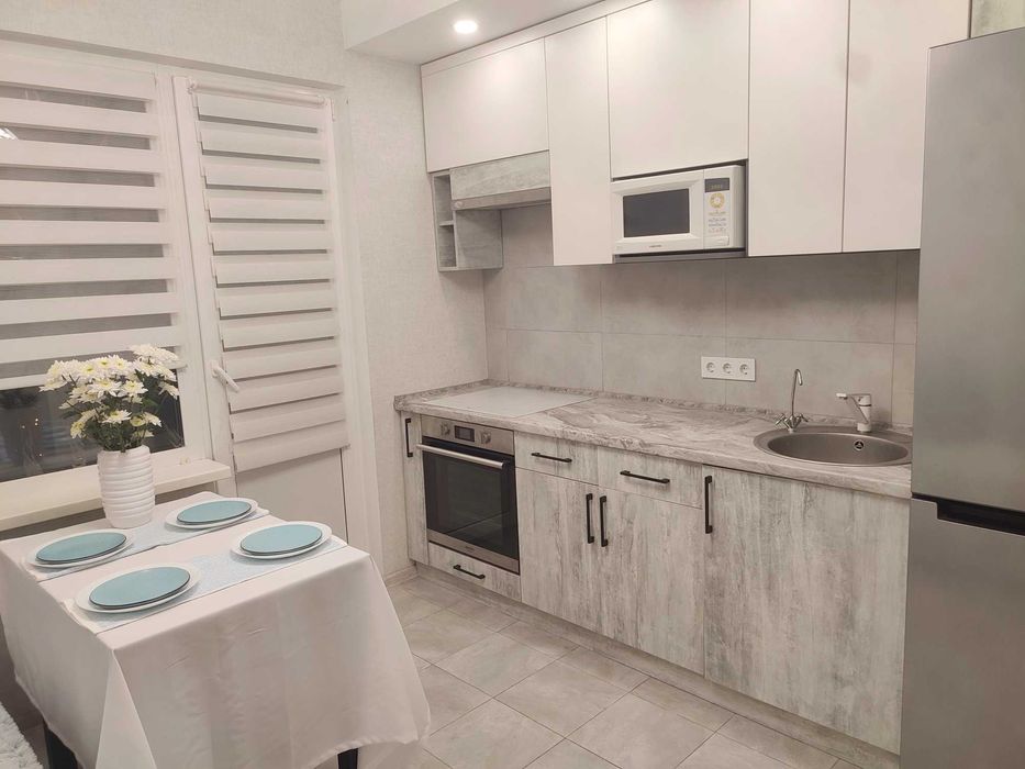 Квартира з готовим ремонтом у світлих кольорах, повністю мебльована.
