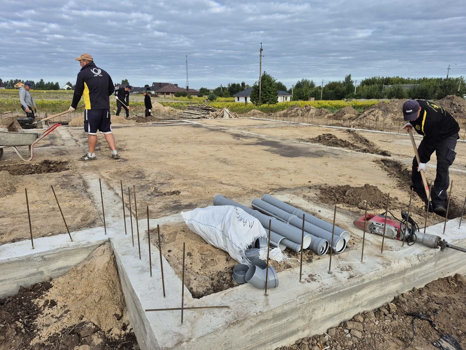 -монолітний армований фундамент 110см з гідроізоляцією, залита армована плита, додаткове армування зони під камін