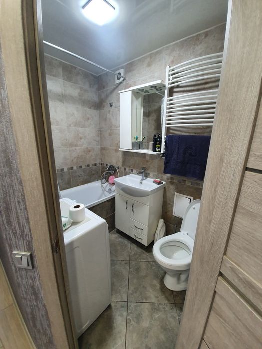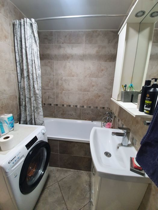 •сучасна ванна кімната з новою сантехнікою та пральною машиною;