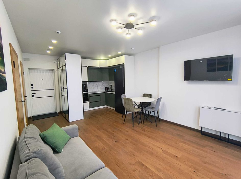 Квартира повністю укомплектована меблями, технікою, посудом, столовими приборами та всім необхідним для комфортного проживання — жодних додаткових витрат.