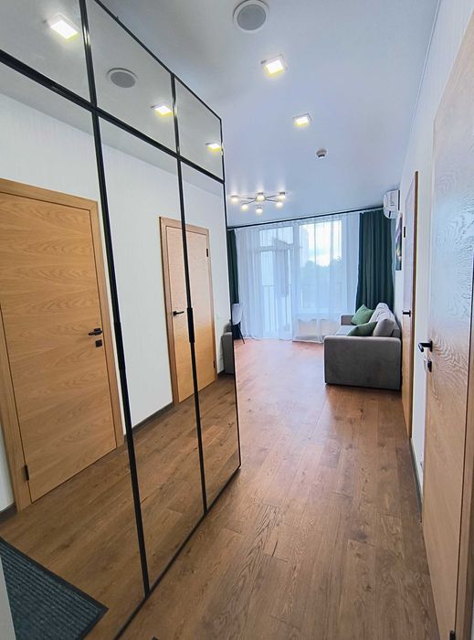 Святошинський; Оренда ЕНЕРГОНЕЗАЛЕЖНОЇ квартири 42м.кв в без % Be the One Стуса 35Б.; Квартира розташована на 9 поверсі й має новий сучасний ремонт. Планування включає простору кухню-студію, затишну спальню (12,9 м²) та балкон. Оснащення: два кондиціонери, великий холодильник, посудомийна машина, варильна поверхня, духовка, мікрохвильова, чайник, пральна машина та бойлер.