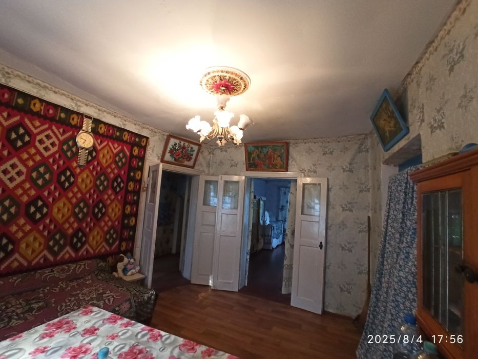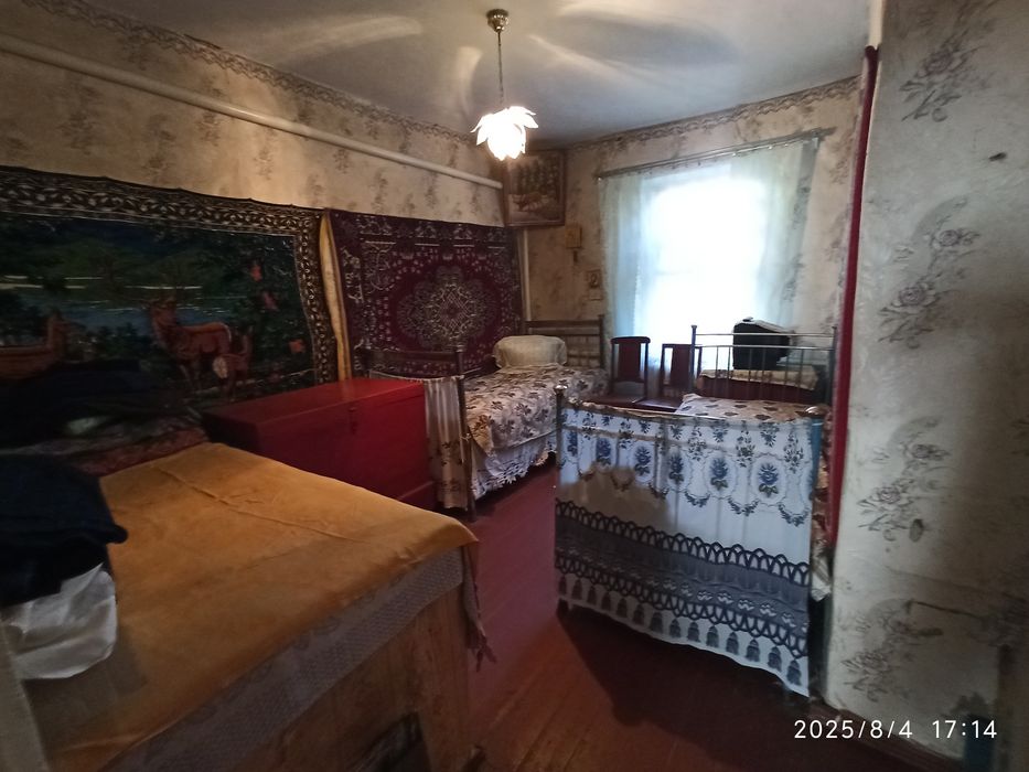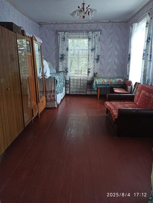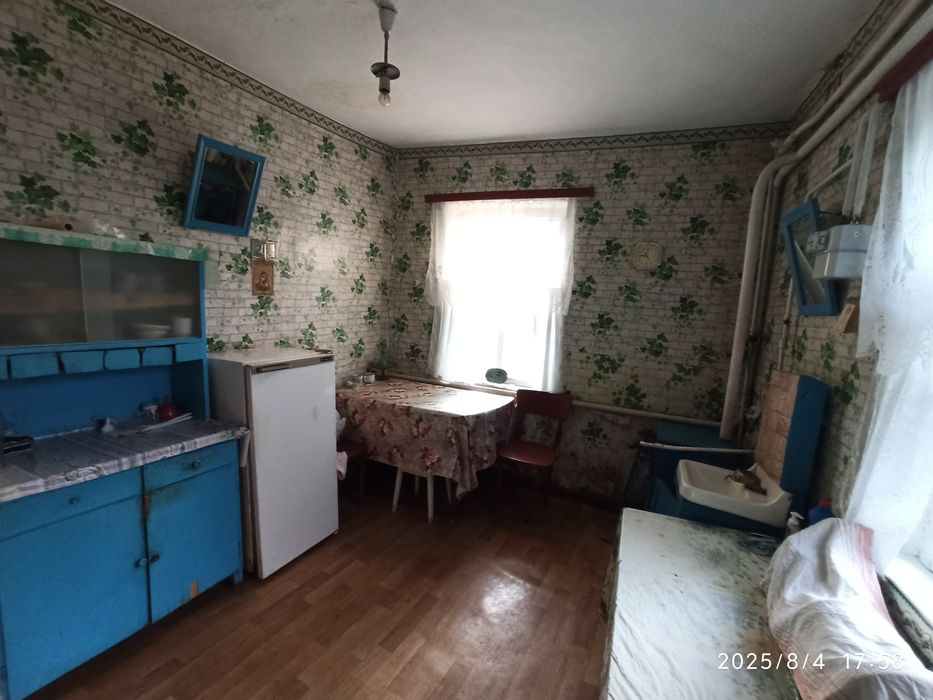 Будинок 1965р, заг площа 63,4м2, цегляний, вкритий шифером, має 3 кімнати, кухню, коридор та веранду, газифікований. Стан житловий. Є робочі піч та лежанка, за потреби отоплюються дровами або вугіллям. В дворі є колодязь та багато господарських побудов (цегляних), а також вхідний погреб.