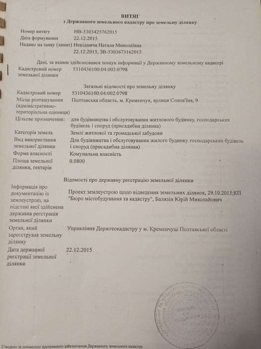 продам землю Полтавська область місто Кременчук
