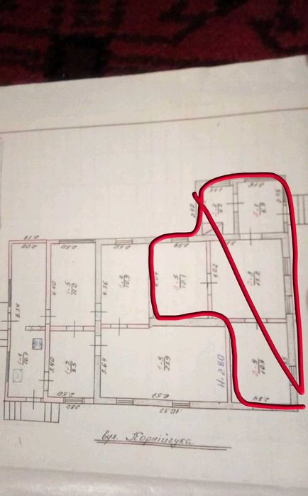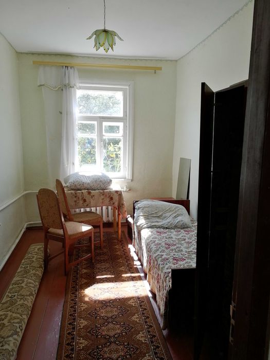 Продаж частини будинку м.Коростень; Пропонується до продажу частина будинку м.Коростень, біля школи №1. В будинку 3 кімнати, вітальня, кухня, загальна площа 71 кв.м. Надворі гараж та літня кухня з грубкою. Світло, газ в будинку, опалення водяне, колодязь, подача води до будинку насосна станція. Будинок потребує ремонту. Окреме подвір'я. Біля будинку 2 сотки землі чорнозем. Є кадастровий номер на землю.