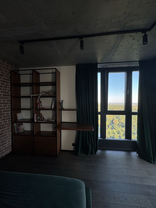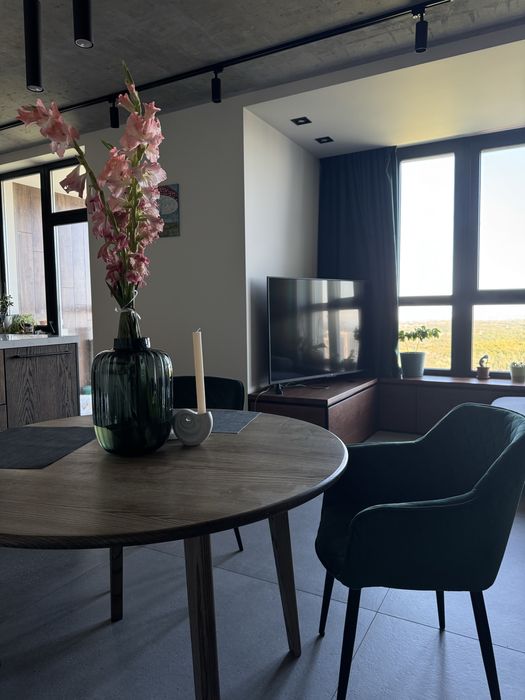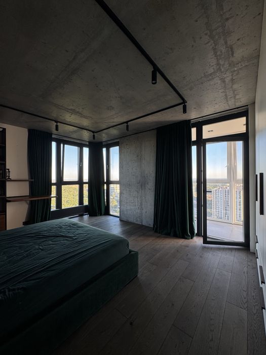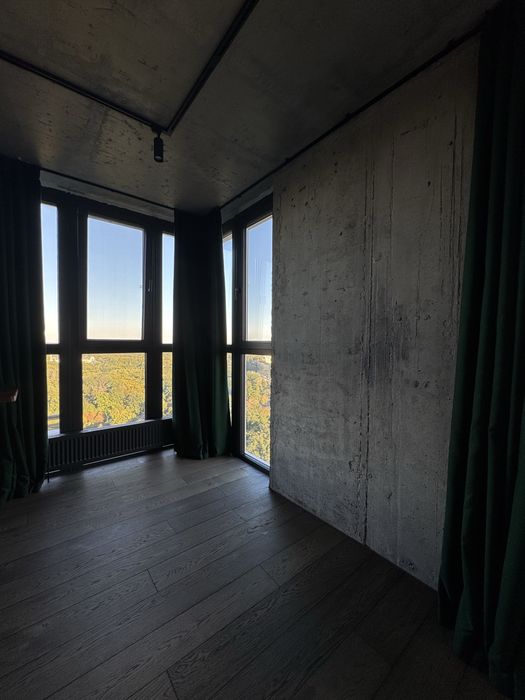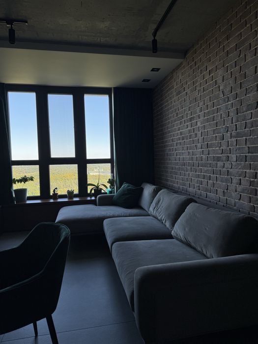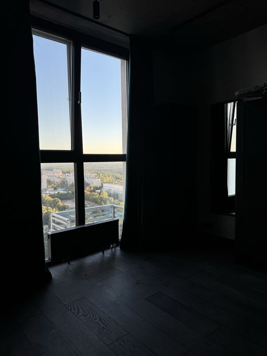 Завдяки унікальному плануванню у цій квартирі можливо як зустрічати світанки із перспективою річки Дніпро на горизонті, так і вдивлятися у барви заходу сонця в іншій частині кімнат.