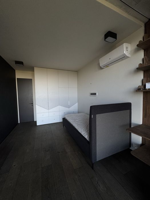 велику спальну кімнату із зручним двоспальним ліжком, вбудованим гардеробом, декількома сценаріями світла, балконом, вбудованими полицями;