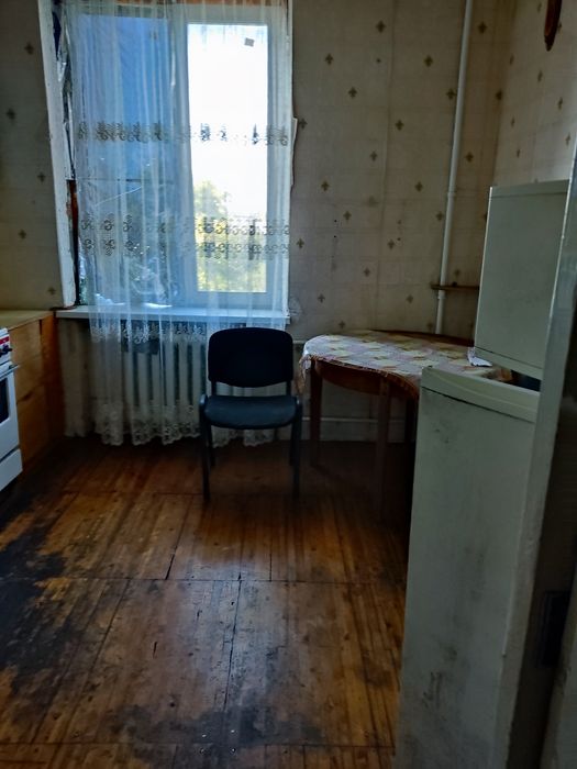 В квартирі є холодильник, стара газова плита, диван, шафа.