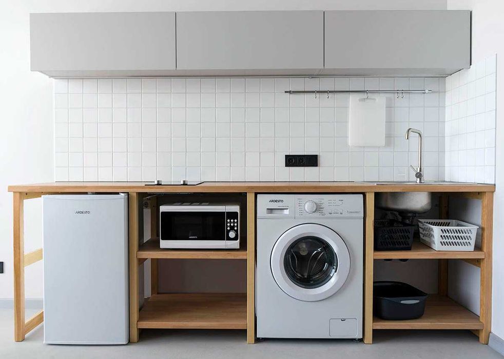 Есть кондиционер, стиральная машина.